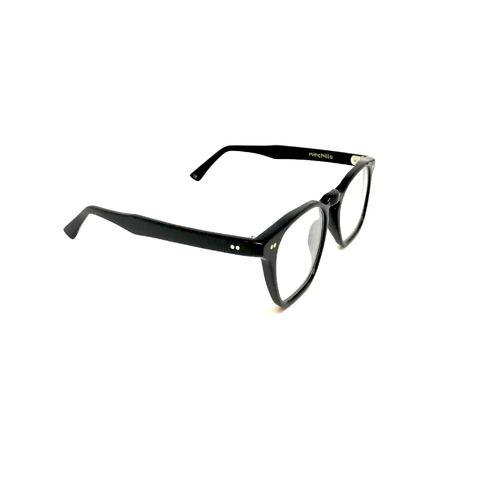 Acetat Minchillo Material: Acetat Rahmenfarbe: Schwarz Linsendurchmesser mm: 48 mm Stegbreite: 20 mm Stangenlänge mm: 145 mm Per Sicht einstellbar: ja Individualisierbar mit anderen Linsenfarben: ja Linsenbehandlung: nein Polarisiert: Nein Kristalllinsen: nein Sonnenbrillenclip: nein